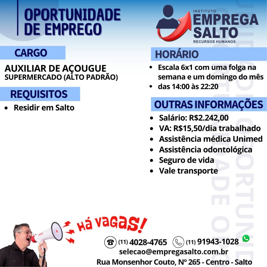 AUXILIAR DE AÇOUGUE – SUPERMERCADO DE ALTO PADRÃO (SALTO)
