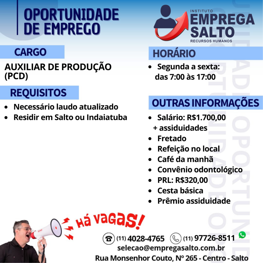 AUXILIAR DE PRODUÇÃO (PCD)