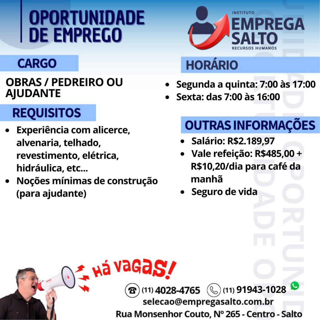 OBRAS – AJUDANTE OU PEDREIRO
